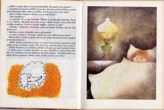 「さくらんぼ王国のお姫様」というタイトルのこちらの絵本は、現在は違うイラストレーターによって復刻されているようですが、こちらはオタ・ヤネチェクのイラストによるもの。線画によるイラストは1点のみで、後は温かみのあるやわらかなタッチで描かれています。初版は1975年で表紙が異なります。全30ページ、全ての見開きにイラストが入ります。経年の汚れなどはあるものの状態良好です。