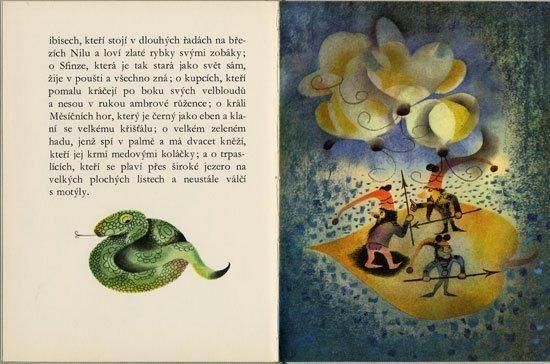 オスカー・ワイルドの名作「しあわせな王子」のチェコ語版です。イラストを担当するのはオタ・ヤネチェク。表紙のイラストのような幻想的なタッチから、線画の組み合わされたコミカルなイラストまで、全51ページ、全ての見開きにイラストがあります。ヤネチェクの作品の中でもオススメの一冊です。ページ一面、もしくは両面を大きく使ったイラストが15点。