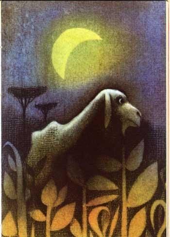 日本でも翻訳され出版されている、スペインの詩人ヒメネスの名作、「プラテーロとわたし」に、オタ・ヤネチェクがイラストを担当した一冊。幻想的なタッチのイラストばかりが収録されていて非常に人気の高い一冊です。全107ページにページ一面を使ったイラストが20点。表紙カバーの折り返しなど折れ目のあるところに擦れによる傷み。詳細は画像をご参照ください。内部は経年の傷みは多少ありますが比較的状態良好です。この絵本は傷みが目立つものが多いのですが、こちらは今までの入荷分の中でもかなりマシなほうだと思います。