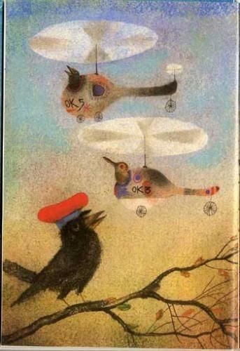 オタ・ヤネチェクの得意分野、鳥のイラストが中心の絵本です。幻想的で美しいタッチのイラストと、クレヨンで描いたような、簡素なタッチのイラストの両方が楽しめる作品です。発行部数も15000部と少ないため、ヤネチェクのファンの方にはオススメです。全46ページに21点のイラスト。ページ一面を使ったものが8点収録されています。背表紙のコーティングに少し剥離の傷み。画像ではわかりにくいのですが表紙全体にビニール加工にシワがあり気泡ができています。表紙裏側に引っ掻いてめくれたような傷があります。画像をご参照ください。内部は破れ落書きなどはありません。