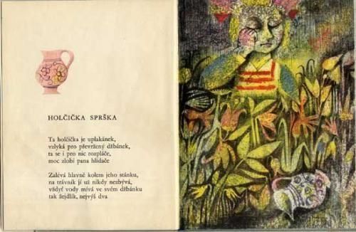 「Kam Chodi Slunce Spat」と同じく、ラジスラフ・ドヴォジャークの美しい詩にオタ・ヤネチェクが優しいイラストをつけています。ザラつきのある紙に驚くほど鮮やかな印刷が施されています。全56ページ、ページ一面を使ったイラストが15点。全ての見開きにイラストがあります。見返しのイラストもとても美しく、ヤネチェクのファンならずとも、チェコ絵本独特の深い味わいのある印刷が好きな方なら、ぜひ手にとって見ていただきたい一冊です。コーティングのされていない、傷みやすい材質の表紙カバーなため、破れが数ヶ所あります。角に細かい破れや擦れ、特に目立つの背表紙まわりで、中程に8cmにわたる傷みと破れ。下部にも剥離による傷みと破れがあります。詳細は画像をご参照ください。本体は経年の傷みはあるものの比較的状態良好です。