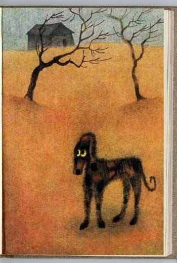 旧ソ連で発行された本のチェコ語翻訳版。イラストをオタ・ヤネチェクが担当しています。犬、鳥、そしてオッサン。全てが幻想的に描かれています。小説の挿絵として収録されているにしては豪華な構成になっています。全97ページに1面を使ったイラストが11点。