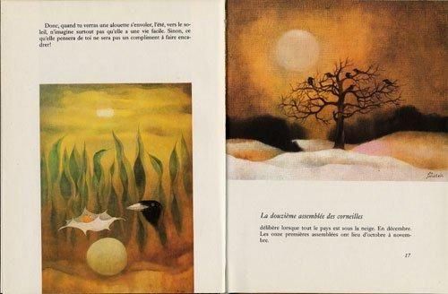 「Zobacek Mi Namalujte Cervene」のフランス語版です。チェコ語版とは装丁デザインが違いますが、チェコ語版の表紙のイラストももちろん収録されています。テキストを担当するのはチェコの有名な詩人、フランチシェク・ネピル。イラストはオタ・ヤネチェクによるものです。物語にヤネチェクが挿絵を担当した、と言うのではなくヤネチェクの美しいドローイングにあわせて、ネピルが詩をつけるという、普通の絵本とは違った製作方法がとられているため、ヤネチェクの画集のようにイラストを楽しむことができます。全66ページ、ほぼ全ての見開きにヤネチェクの幻想的なイラストが描かれています。状態良好。