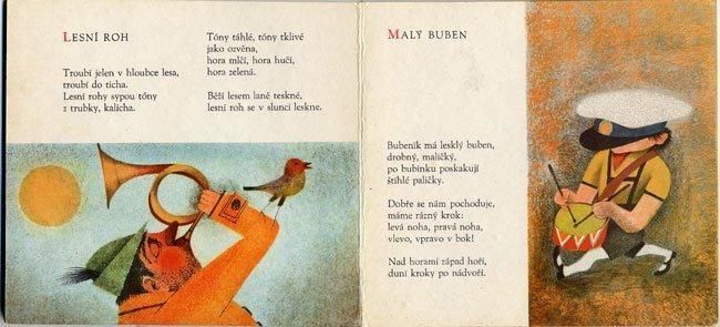 オタ・ヤネチェクの珍しいボードブックです。1962年の作品でザラつきのある紙に美しい印刷が施されています。本棚に飾るだけでも素敵な一冊です。ブラチスラヴァのムラデー・レター社発行ですが、テキストはチェコ語です。全16ページ、全てのページにイラスト。レコード付きのものとレコードなしのものがあるのですがこちらはレコード付き仕様なのですが欠損。見返しが袋状になっています。その他擦れなど経年の傷みは多少ありますが比較的状態良好です。