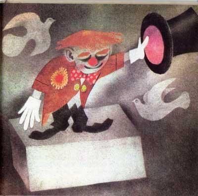 1972年にモスクワで発行された絵本のチェコ語翻訳版。イラストはおなじみ、オタ・ヤネチェクによるものです。「SLABIKAR ABC」と同様、クレヨンで書いたような簡素なタッチのものから、幻想的なタッチまで振れ幅の大きなイラストが楽しめる一冊です。全80ページにページ一面、または両面見開きを使ったイラストが10点。その他にも大き目のカットが10点描かれています。発行部数も10000と少なめで珍しい作品です。背面見返し(無地のページ)に折れ跡。すこしシミ汚れなどのある場所がありますが破れ落書きなどはありません。