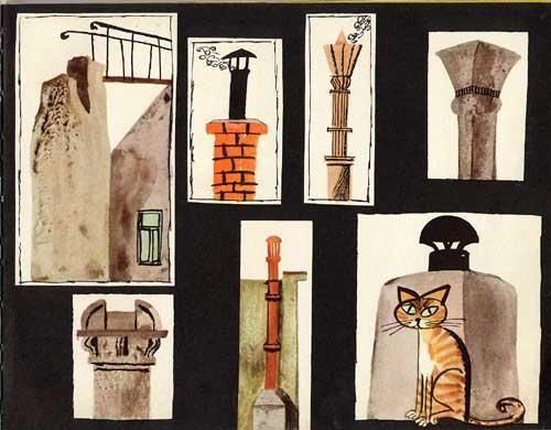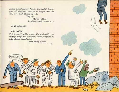 ボフミル・ジーハとヤロスラフ・チヒーの書いたお話に、「At prestane svitit」と同じ、ルドルフ・マデルがイラストを担当した絵本。表紙からも想像がつきますが煙突のお話、レンガのお話、鍛冶のお話、造園のお話と言う4章に分かれて楽しく解説した学習絵本です。また各章ごとに煙突は黒、レンガは赤という感じで内容に沿ったテーマカラーが決められ、それが効果的に使われています。全118ページ。ほぼ全ての見開きにイラストがあります。