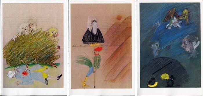 イラストレーターと言うよりは彫刻家としてのほうが有名なスタニスラフ・コリーバルがイラストを担当した絵本です。絵本作家としては寡作であまり作品を残していません。スペインの童話を集めて収録した絵本です。全240ページというボリュームに、ページ一面を大きく使ったイラストばかりを40点ほど収録。スタニスラフ・コリーバルの作品はチェコ国内でも非常に人気が高く、特にこちらはイラストが多く使われているため作品集のような趣です。チェコのイラストレーターはイラストのタッチが様々で、色々な面を見させてくれる人が多いですが、彼の作品も本によって様々な顔が見られるので面白いですね。表紙カバーに少し折れシワなどの傷み。その他は状態良好です。
