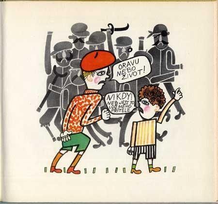 花のような詩というシリーズのペーパーバックで装丁デザインをしていることでも知られる、シルヴィエ・ヴォダーコヴァーによるイラストの絵本です。全148ページに24点のイラストを収録。ほとんどが線の太い、モノクロのコミカルなイラストで、特に目の描き方に特徴があります。どのキャラクターもかなりいやらしい顔に仕上がっていて面白いですよ。ページ一面を使ったカラーイラストは4点です。状態良好。