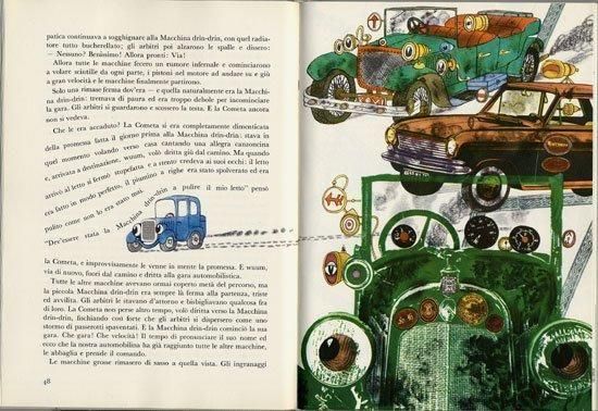 アルティアがチェコで印刷し、イタリアに輸出していた絵本。ヴァーツラフ・チトゥヴルテック、アロイス・ミクルカ、ミロシュ、マツォウレック、ルドヴィーク・アシュケナジなどなど、一癖も二癖もあるチェコのいろんな作家たちによる、46編の短い話を収録した絵本です。イラストをヴァーツラフ・シヴコが担当しています。シヴコは個人的にもかなり好きなイラストレータですが、特にこの絵本は彼の作品の中でもかなりオススメで、色使いの美しさはもちろん、コミカルなイラスト、構図、ページの使い方などが秀逸です。さらに折りたたみの仕掛けあり、コラージュありと遊び心にあふれていて素晴らし過ぎます。シヴコの古い作品よりもずいぶんとグラフィカルなので、フカやホフマイステルなどが好きな方にもおすすめの一冊です。1972年の絵本なので印刷も美しく、ザラつきのある紙に鮮やかな色彩が広がっています。全218ページに大小さまざま100点ほどのイラスト。表紙上部に3mm程の破れ、その他経年の傷みなどがございますが比較的状態良好です。
