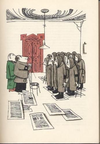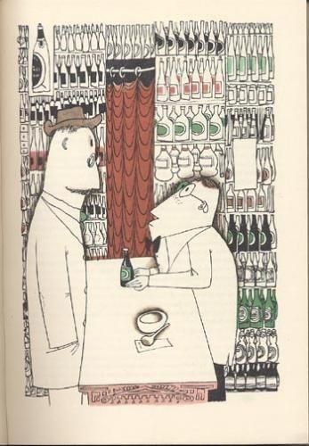 「12脚のイス」というタイトルの物語。ウラジミール・フカがイラストを担当しています。1956年にソ連で発行された作品のチェコ語版です。コミカルなイラストが多く、イラスト以外にも、タイポグラフィーなどに趣向の見られる面白い一冊です。全290ページ、厚みが3cmほどあります。ページ一面を使ったイラストが33点、小さなカットも多数あります。表紙カバーはビニールコーティングのされていないザラつきのある紙質で、経年によるイタミ、少し破れなどありますが本体は状態良好です。