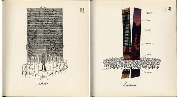 テキストはドイツ語、フランス語、英語で書かれています。ページの左にテキスト。右にイラストと言う構成が多いですが、見開きを大きく使ったものも多数見られます。