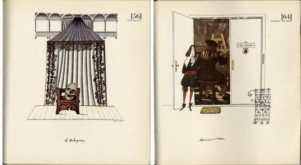 「架空のポートレート」というタイトルで、世界に名だたる著名人のイメージイラストをヴラジミール・フカが独自の感性で描きあげた作品です。以前紹介した「まるで別世界」と並んでフカの最高傑作と言っても過言では無い作品です。描かれた人物はバッハ、コロンブス、ヘミングウェイ、シャガール、チャップリン、クレー、ダヴィンチなど垣根を越えて様々なジャンルの68人。チェコからもハシェク、カフカ、ドヴォジャークなどが描かれています。