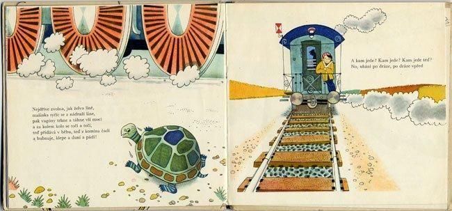 機関車のお話。ポーランドで発行された絵本のチェコ語翻訳版。イラストを担当するのはヴラジミール・フカです。