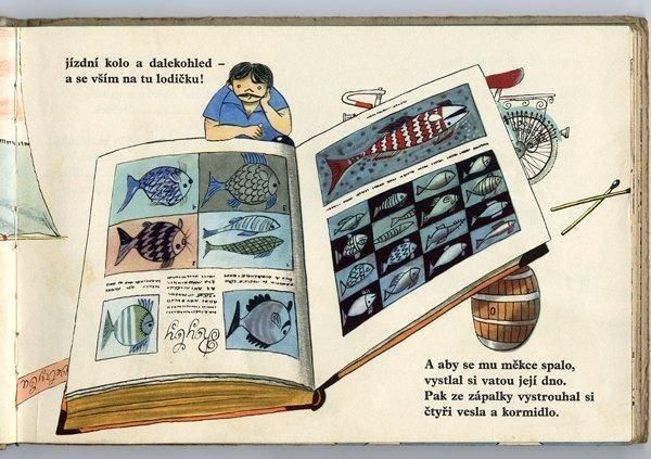 ポーランドで発行された絵本のチェコ語翻訳版。1975年にはルジェク・ヴィムルがイラストを手がけたバージョンも出版されていますが、こちらはヴラジミール・フカによるイラストの1958年版。フカの絵本の中でもなかなか見つけられることのない超レアな一冊です。120ページを超えるボリュームの絵本ですがすべてのページにカラーイラストが描かれています。
