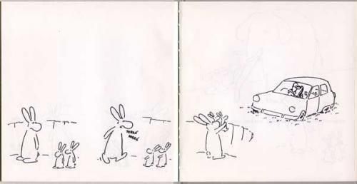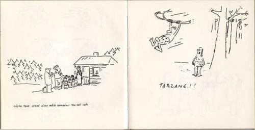 落ち着きのあるゴールドの表紙が目を惹くこちらの本は、ボブとボベックやアニメーションではおなじみのパットとマットのキャラクターデザインでもおなじみのヴラジミール・イラーネクによる風刺漫画コレクションです。モノクロの出来るかぎり省略された線画によるイラストですがかわいいですよ。絵本好きだけではなく、アニメーション好き、グラフィック好きにもオススメの一冊です。全140ページ、ほぼ全てのページにイラストがあります。