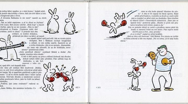 日本ではまだDVD化されたりはしていませんが、チェコではとても人気のうさぎのコンビ。ボブとボベック。以前93年版を紹介しましたがこちらは2001年の新装版。風刺画やパットとマットのキャラクターデザインでもおなじみのヴラジミール・イラーネクによるイラストです。構成などが変わり、イラストもカラーイラストに変わっています。全65ページ、ほぼすべての見開きにカラーイラストがあります。状態良好。