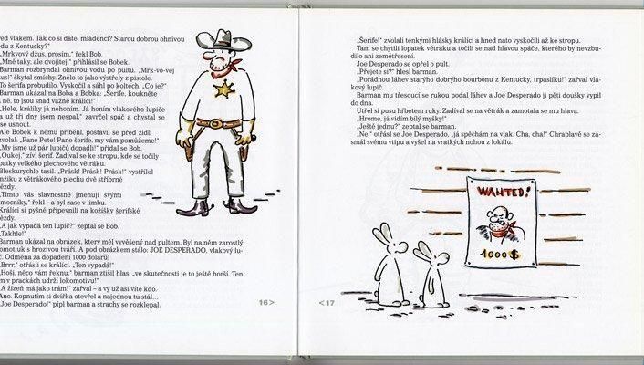 日本ではまだDVD化されたりはしていませんが、チェコではとても人気のうさぎのコンビ。ボブとボベック。2006年の新作。ボブとボベクが旅に出ます。風刺画やパットとマットのキャラクターデザインでもおなじみのヴラジミール・イラーネクによるイラストです。全60ページ、ほぼすべての見開きにカラーイラストがあります。裏表紙の角に当たりによる傷み。その他は状態良好。