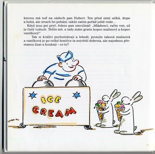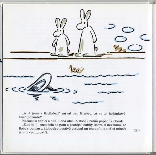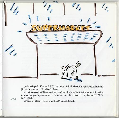 日本ではまだDVD化されたりはしていませんが、チェコではとても人気のうさぎのコンビ。ボブとボベック。以前93年版を紹介しましたがこちらは2003年の新装版。風刺画やパットとマットのキャラクターデザインでもおなじみのヴラジミール・イラーネクによるイラストです。構成などが変わり、イラストもカラーイラストに変わっています。全65ページ、ほぼすべての見開きにカラーイラストがあります。擦れなど経年の傷みや少し汚れのあるページはありますが比較的状態良好です。