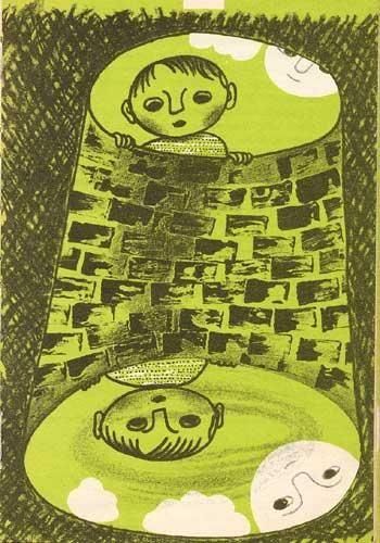 ヴァーツラフ・チトゥヴルテクの原作にズデネック・クレイチーがイラストを担当しています。彼のイラストタッチはヤン・クビーチェクに少し似ているような気がします。全58ページに、ページ一面を使ったイラストが9点、そのうちフルカラーが4点。それ以外には、文字を装飾したイラストカットが各章の始まりに描かれています。1ページ端にシワと汚れが目立つ箇所があります。また、見返しに少し剥離による痛みがあります。画像をご参照ください。それ以外は状態良好。