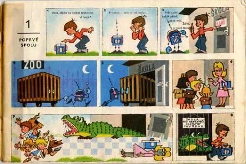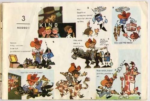 子供向けの雑誌「オフニーチェク」で連載されていた作品をまとめて一冊の絵本にした作品です。イラストとお話を担当するのはもぐらのクルテクシリーズでおなじみ、ズデネック・ミレルです。チェコ語がわからなくてもイラストを追っていくだけで、何となく内容がわかるマンガ形式の絵本です。ロボットが引き起こすドタバタ劇が満載でとても面白く、復刻された新刊が現在も発売されている人気の作品で、当時のものは結構珍しいです。発色もとても綺麗ですよ。