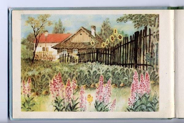 クルテクでおなじみのズデニェック・ミレルの絵本です。「ひよことむぎばたけ」というタイトルですが後年にボードブックであらためて描きなおされています。こちらは描き直される前の作品でずいぶんと絵のタッチが異なります。全24ページ、見開きの左に前面イラスト、右にテキストと小さめのイラストという構成です。