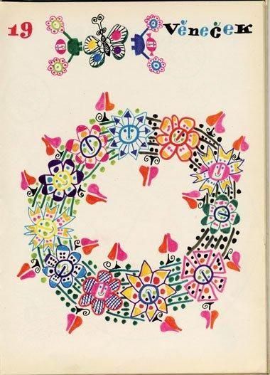 ズデネック・セイドゥルがイラストとテキストの両方を手掛けた一冊。「輪」をテーマにしたイラストばかりが収録されています。34×24cmと大型サイズの絵本でサインペンでダイナミックに描かれた可愛らしいイラストが堪能できます。発行部数はわずか5000と少なく、セイドゥルの作品のカでも特に珍しく、ほとんど見かけるこのない貴重な一冊です。全50ページ、全てのページにイラストがあります。扉、見返しにうっすらと汚れがあります。その他は比較的状態良好ですが、書籍内の余白1箇所に図書館のスタンプが押されています。