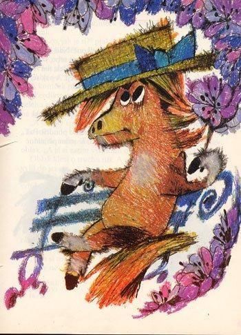 馬のフェルディークとねずみのベルティークのお話。1978年にソ連で出版された絵本のチェコ語翻訳版です。全130ページ、ほぼすべての見開きにイラストがあります。クレヨンでぞんざいに色を塗ったようなタッチが、スデニェック・スメタナのキャラクターに馴染んでいい雰囲気のイラストに仕上がっています。
