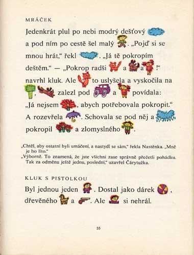 以前紹介した「Lupici a Carytuzka」の続編。1976年にソ連で発行された絵本のチェコ語翻訳版。イラストはおなじみのズデネック・スメタナです。テキストに絵文字?が組み込まれていたりして面白いですよ。全180ページに70点以上のカラーイラスト。ページ一面や見開きを大きく使ったものが多く、眺めているだけでも楽しい一冊です。
