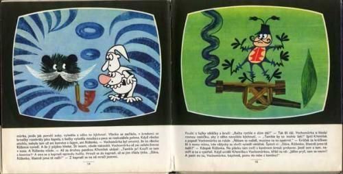 クシェミーレクとヴォホムールカという二人の妖精のお話。キャラクターを見ただけで「ピン」とくるあなたはチェコ絵本通。イラストはアニメーション監督としても有名なズデニェク・スメタナです。テレビアニメーションとして放映されていた物を絵本に起こした作品。と言うわけでテレビの画面型にトリミングされたスペースに作品の世界が広がっています。全95ページ、全てのページにイラスト有。表紙左上部にイタミ。3cmほど破れのあるページが1箇所、1cmほどの破れが1箇所。その他経年の傷みがあります。