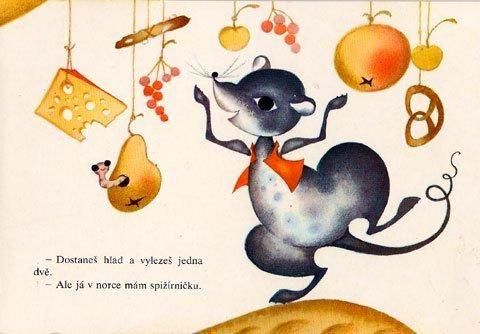 モスクワで1972年に発行された絵本のスロヴァキア語翻訳版です。ねずみのリシュカとキツネのミシュカのお話。トムとジェリーみたいなもんでしょうか?いや、たぶん違うんでしょうね。全10ページのボードブックでもちろん全ページにイラスト有。状態良好。