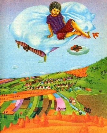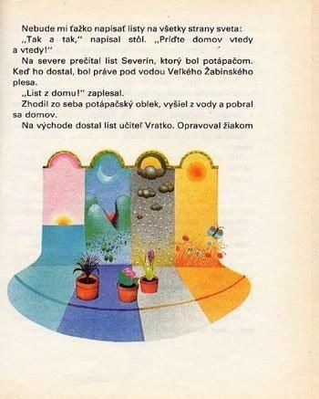 カラフルな色使いのイラストが目を引く絵本です。人物だけは結構リアルなタッチで描かれています。ブラチスラヴァのムラデーレター社発行。イラストは全44ページに見開き一面を使ったイラスト3点を含む、全11点。状態は良好です。