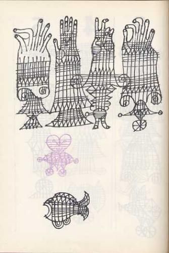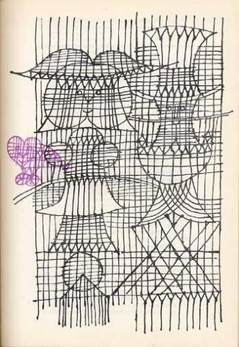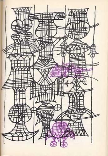 3、4ページに一度ぐらいの割合でイラストが入ります。イラストは全て画像のような線画による格子模様のようなイラストで、時折、紫、あるいは紫ベースに描かれることがあります。背表紙上部に少し痛みがありますが状態良好。全166ページ。