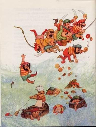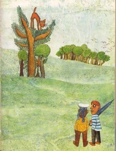 1979年にモスクワで発行された絵本のチェコ語版。脱力すること間違いなしのコミカルなイラスト満載です。やたらといろんなパターンのオッサンが登場するので、オッサン好きの方にぜひ。全85ページ、ほとんど全ての見開きにイラストがあります。見返しに5mmの破れ有、それ以外は良好。
