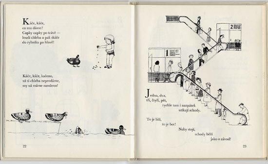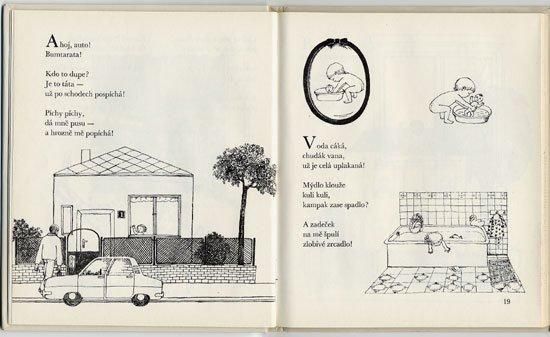 オランダで発行された絵本のチェコ語版。2編のお話が収録されています。イラストはヤルミラ・マレショヴァーが担当しています。モノクロのイラストのみですが、全70ページ、ほぼ全てのページにカットがあるという豪華さです。しかもどのイラストもコミカルで可愛らしいものばかり。表紙に擦れによる傷みが多少あります。それ以外は状態良好。