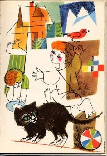 子猫のペトリショルカのお話です。表紙からしてずいぶんと可愛らしいですが、中のイラストもなかなかのもの。鮮やかな色!このタッチ!ネコ好き垂涎の一冊です。そしてなんと物語の最後にはペトリショールカのサインまであります。全45ページ中、11ページ以上がページ一面を使ってのイラスト。状態良好です。