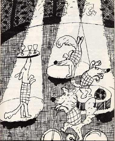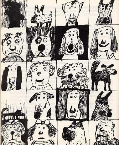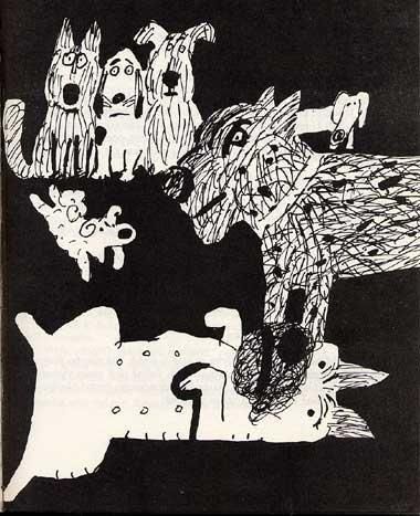 全80ページに26点のイラストがあります。ほとんどがページ一面を使ったイラストで、左ページの左下には犬のシルエットが描かれていて出来の悪いパラパラマンガのようになっています。状態は良好です。