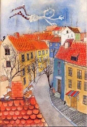 東ドイツで発行されたお話のチェコ語翻訳版。イラストもチェコ人による物です。タイトルは「学校のお化け」と言う意味です。そんなわけで、おどろおどろしいタッチでイラストが描かれていますが、よく見ると結構コミカルで面白いです。