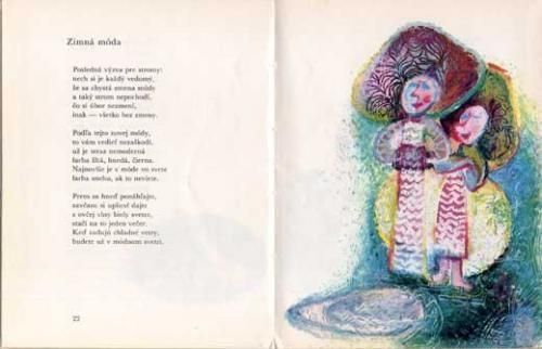 スロヴァキア語で書かれた詩集絵本。赤と青が多用された独特の不思議なタッチで彩られています。