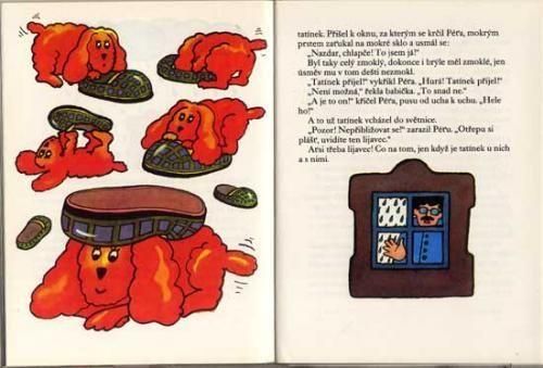ロシアで発行された絵本のチェコ語翻訳版。「僕のパパは魔法使い」というタイトルのお話で、表紙真ん中のサングラスをかけた詐欺師みたいなオッサンが魔法使いです。太い線とハッキリした色彩でコミカルにイラストが描かれています。