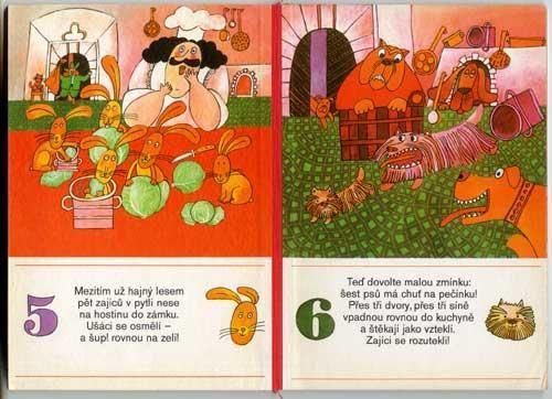 パベル・シュルトのお話にダグマル・ドウブコヴァーがイラストを担当した絵本。数え歌のようになっていて、最初は1人の王様、2匹の魚、3匹のネコ。と10までお話が続きます。初期のボルンとピラシュを足したようなイラストで、とても馴染みやすくかわいらしいタッチです。