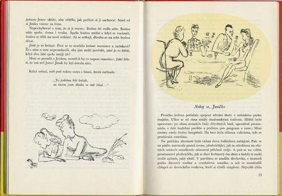 フランチシェク・コジークのお話にヘレナ・フヴォイコヴァー、つまりイジー・トゥルンカの最初の奥さんがイラストを担当した作品です。モノクロの線画のイラストばかりですが、脱力系でなかなか味わい深いイラストです。全142ページに27点のイラスト。背表紙上下に擦れによるコーティングの傷みがありますが比較的状態良好です。1969年メラントリフ発行の第5版です。