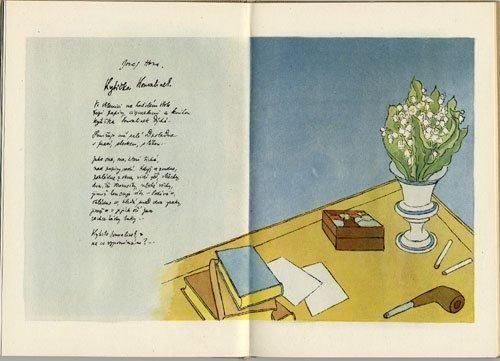 サイフェルトやコプタ、ネズヴァルといった面々の詩に花のイラストが添えられた美しい一冊。巻末には民族的なモチーフとして使われる花のイラストも紹介されています。1948年の作品とかなり古く、しかも発行部数も4000と少ないためとても貴重な1冊です。資料的な価値も高いのでチェコの伝統工芸、民族衣装といったフォークロアな部分に興味がある方にオススメです。