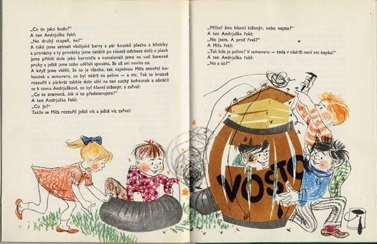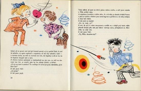 「Kde obchazi Jonas」でも美しいアートワークを見せたズデナ・マツクーのイラストによる絵本です。色鉛筆の柔らかなタッチとコラージュが組み合わされた面白い作品に仕上がっています。全147ページに30点ほどのイラスト。こちらは初版14000部発行です。1967年発行の2版も紹介していますのでそちらもご覧ください。少しお話が追加され違う構成になっています。表の見返しの縁に少し日焼けがありますが、その他は比較的状態良好です。