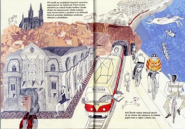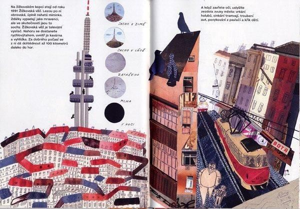ミハエラ・クコヴィチョヴァーの美しいコラージュでプラハの街が活き活きと描かれています。
