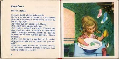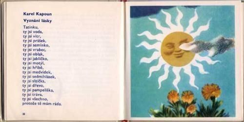 ヤン・アルダ、イジー・ハベル、フルビーンにハラス、ネズヴァルと言ったメンツの詩や短編にトゥルンカを始めとした8名のイラストレーターの挿絵が描かれた絵本。カラーイラストは4点で全てトゥルンカによるもの。その他、ミクルカ、パツォウスカー、ヨゼフ・チャペック、ズマトリーコヴァー、ストゥルナデルといったメンツの小さなカットが1点、もしくは2点ほど掲載されています。オムニバスの形式をとっていますが、イラスト的にはトゥルンカの作品と言ってしまって良いでしょう。全110ページ、状態良好です。