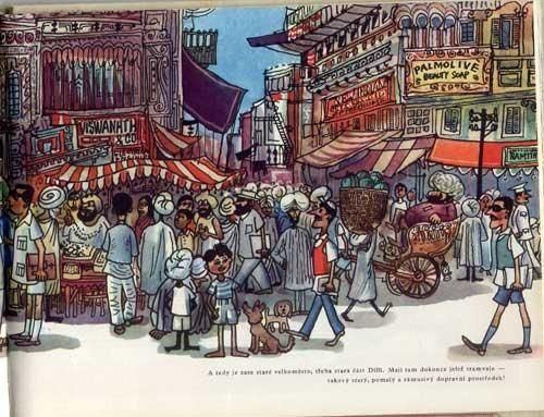様々なイラストレーターが様々な国を紹介するkamaradiシリーズ。こちらはフランス、チリ、インドの3カ国を合わせた合本です。イラストを担当するのは、フランスがイジー・カロウセック。チリがインドジーフ・コヴァジーク。そしてインドがヤン・ブリフタといった、マニアックに豪華な顔ぶれ。