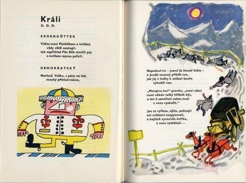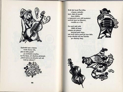 現代チェコ語の父、カレル・ハヴリーチェク・ボロフスキーの詩やお話にイジー・トゥルンカ、アドルフ・ホフマイステル、オタ・ヤネチェク、ズデネック・セイドゥル、アントニーン・ペルツといった超豪華なメンツがイラストを担当した作品です。60年代チェコ絵本の黄金期を象徴するような組み合わせに驚かされます。さらに美しい装丁デザインはズデニェク・スクレナーシュによるものです。全260ページに100点以上のイラストを収録。セイドゥルとペルツのイラストはカラー。その他はモノクロです。トゥルンカが挿絵を描いているのはラダがイラストを手がけていることでも知られる『ラーブラ王』です。ここにも注目ですね。