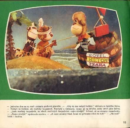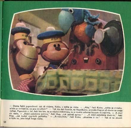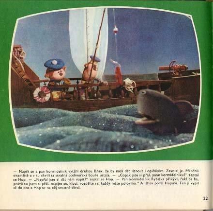 ミロシュ・ノルのイラスト版絵本でおなじみ、フップとホップの写真絵本です。テレビで放送された人形アニメーションをフィルムブックに起こした絵本です。昔のテレビの画面の形のようになった枠内に写真が掲載されています。心にくい編集ですね。全92ページ、全ての見開きに写真有。チェコ語がわからなくても、コミカルな写真だけで充分楽しめます。