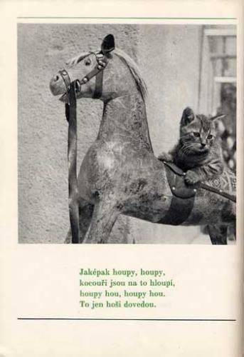 「こんにちは、お日さま」と言うタイトルの人気写真絵本です。フランチシェク・フルビーンによる19編の短いお話、詩が収録され、全てのページに動物の写真があります。チェコで猫はあまり見たことがないのですが、この絵本では猫が大活躍しています。他にも犬、馬、山羊、ブタ、鴨なども。とにかくかわいらしい写真が満載なのでオススメです。