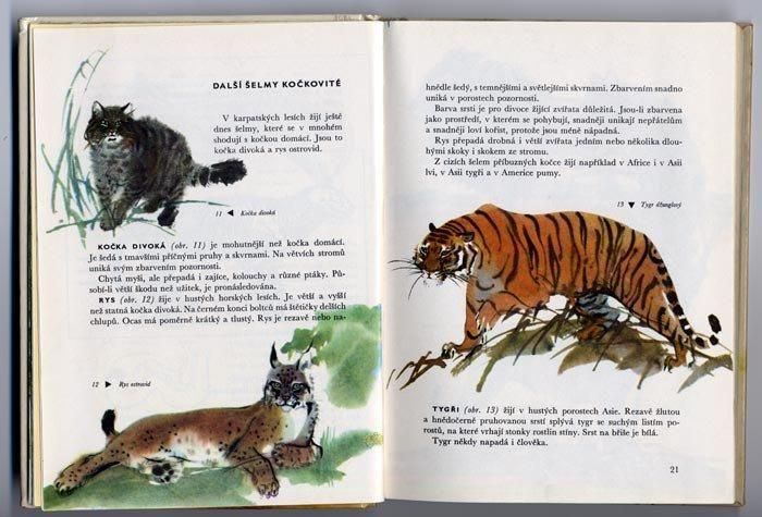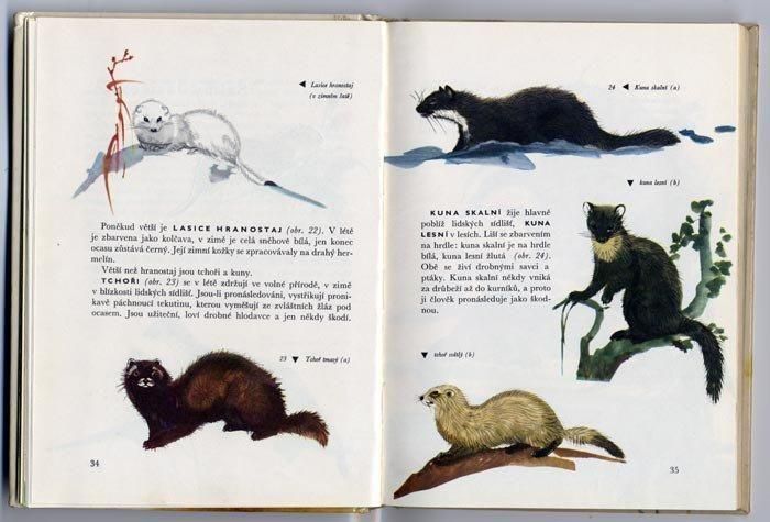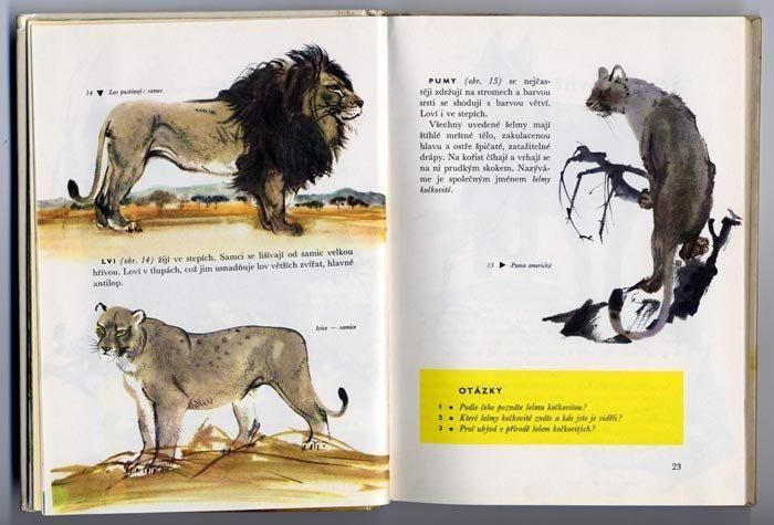 チェコ絵本で動物のイラスト、と言えば真っ先に連想するのがミルコ・ハナークという人が多いと思います。こちらはそのミルコ・ハナークがイラストを担当する動物学の教科書です。以前77年版を紹介しましたがこちらは76年版で少し色が濃い目です。まるで動物図鑑かのようなイラストの多さに目を奪われます。哺乳類、鳥類、魚類、爬虫類はもちろん、恐竜までもが描かれています。
